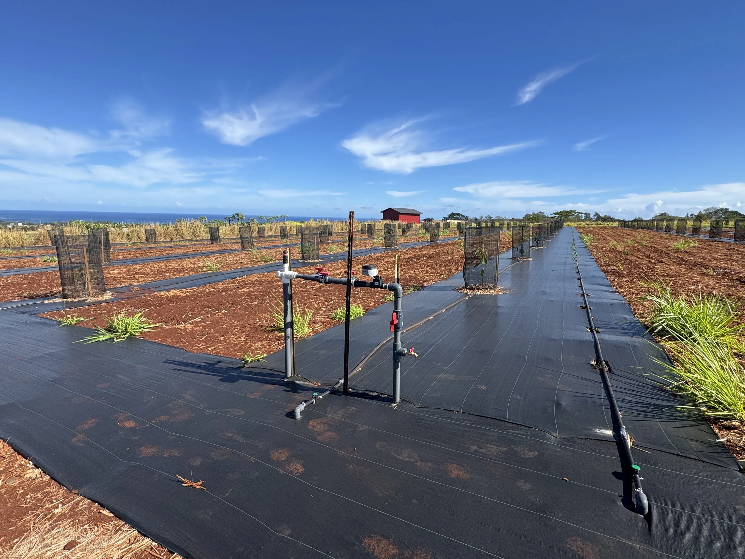 We work alongside families and community groups stewarding farmland by co-developing plans for regenerating soil; removing invasive vegetation; planting native windbreaks and ground covers; trenching and installing irrigation systems; growing custom orders for grafted fruit trees; and setting-up maintenance and monitoring services to maintain crop health and productivity. We aim to support new farmers and stewards on agriculture lands and prioritize working with those with family or multi-generational ties to āina in our community.